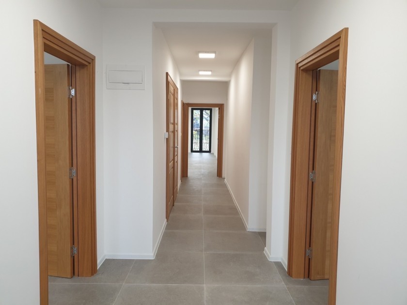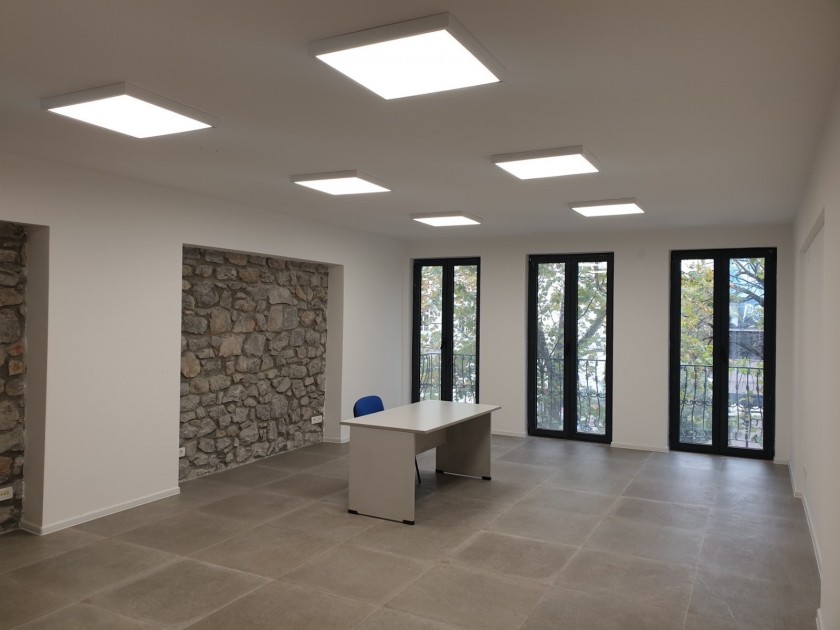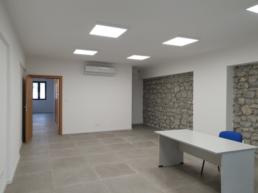 Posjeduje dvije kancelarije, salu za sastanke, wc, klima uredjaje, video nadzor na ulazu od zgrade i interfon.
