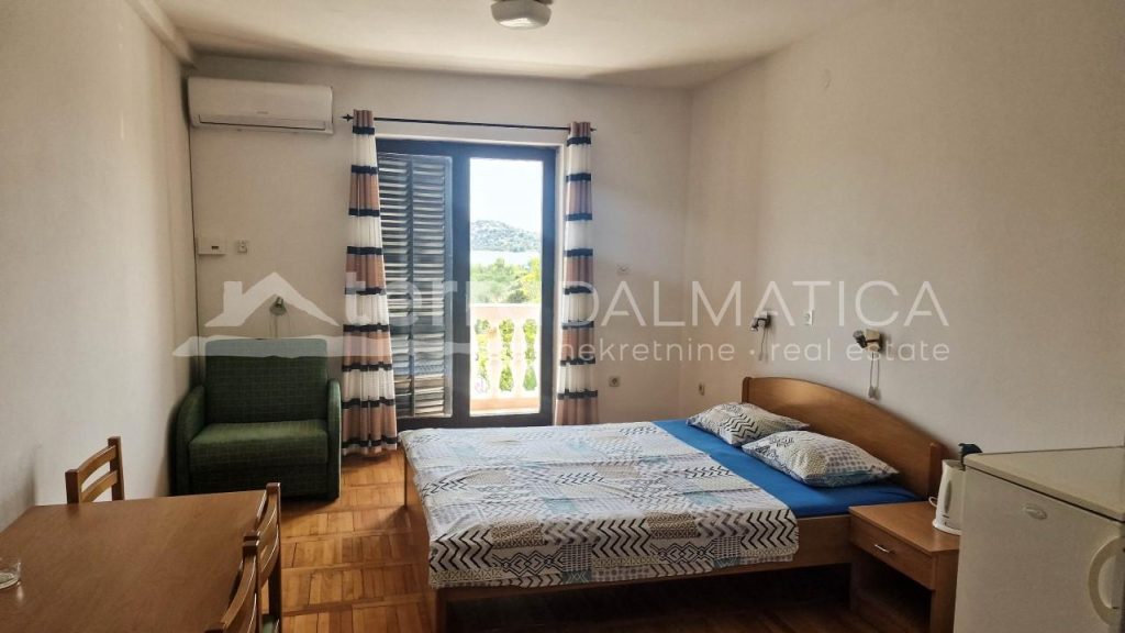 Beschreibung: In Tribunj stehen zwei Apartmenthäuser mit offenem Meerblick zum Verkauf. Sie befinden sich am Rande der Stadt, am Ende der Bauzone auf einem Grundstück von 1265 m2 mit wunderschönem Blick auf das Meer. Apartmenthaus 1 besteht aus dreizehn Studio-Apartments, einer Garage und einem Abstellraum mit einer Gesamtbruttofläche von 499 m2, und Apartmenthaus 2 besteht aus acht Studio-Apartments, drei Apartments mit einem Schlafzimmer und einem Apartment mit zwei Schlafzimmern, drei Abstellräumen und eine Garage mit einer Gesamtbruttofläche von 566 m2. Alle Einheiten verfügen über einen Balkon oder eine Terrasse, sie sind möbliert und für die Fortsetzung der touristischen Aktivität vorbereitet. Tribunj ist eine kleine dalmatinische Stadt mitten an der Adria. Obwohl es sich in den letzten Jahrzehnten dem Tourismus zugewandt hat, hat es sich immer noch den Charme einer kleinen dalmatinischen Stadt bewahrt. Tribunj bietet ein authentisches Erlebnis Dalmatiens und eine hervorragende Gelegenheit, die Küste und das Hinterland der Region zu erkunden. Die Nationalparks Krka und Kornati sowie die Stadt Sibenik liegen in der Nähe und der Flughafen ist nur eine Autostunde entfernt....