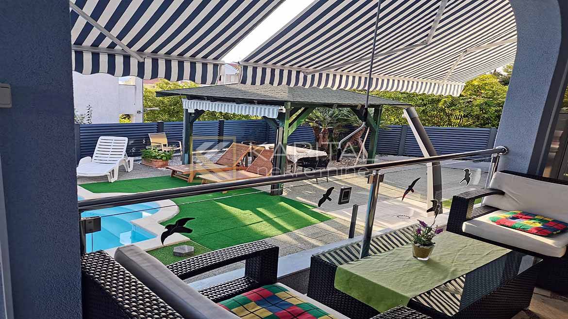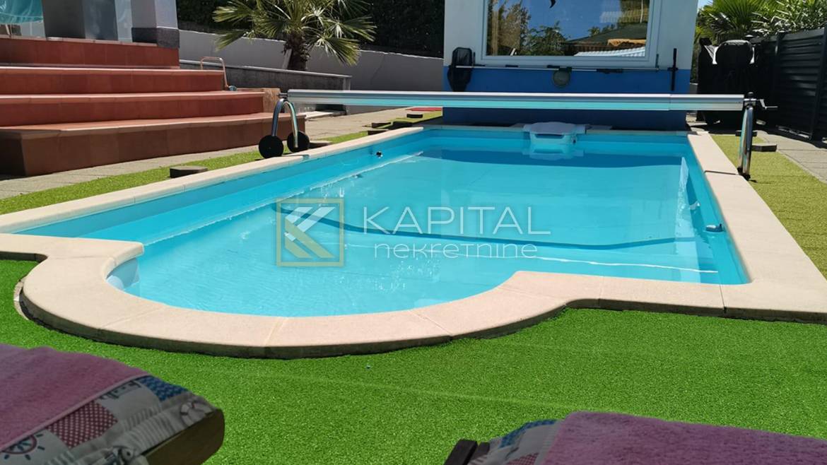 Beschreibung: Zum Verkauf steht ein wunderschönes Haus im Erdgeschoss mit Swimmingpool in außergewöhnlicher Lage - nur 300 m vom Meer entfernt! Die Etage hat eine Fläche von 110 m2 und befindet sich in einem Hof von 600 m2. Luxuriöse Zweizimmerwohnung mit offenem Wohn-/Esszimmer, Küche und Bad. Das Hauptschlafzimmer öffnet sich auf eine überdachte Terrasse mit Blick auf den Pool. Auf der Etage befindet sich ein überdachter Parkplatz. Mit Möbeln verkauft. Jedes Zimmer verfügt über eine Klimaanlage; Fußbodenheizung; Die Etage ist videoüberwacht und kann per iPhone gesteuert werden. Außergewöhnlicher und seltener Ort !!! Für alle Informationen rufen Sie 091/540-6611 an