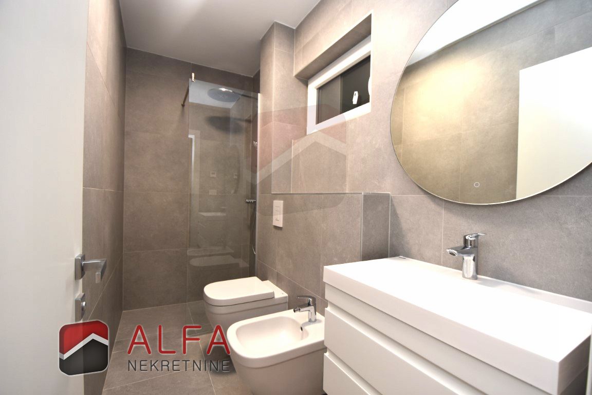 The apartment consists of an entrance hall, three bedrooms, two bathrooms, separate toilet, kitchen with dining and living area with access to large beautiful terrace of 22 m2.