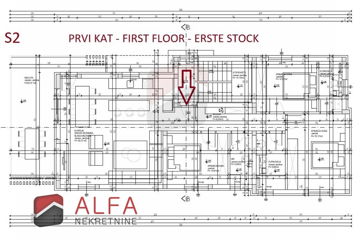 Apartment S2 is located on the first floor of a building of modern architecture and extends through the entire floor. The apartment has area of 109,34 m2.