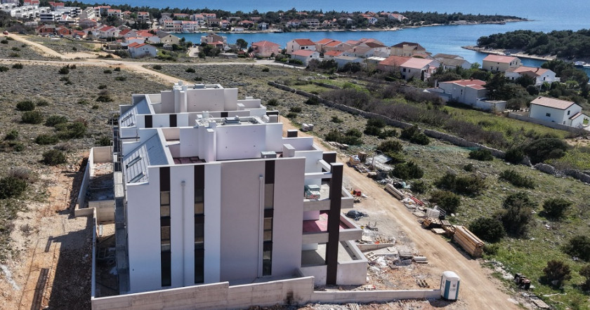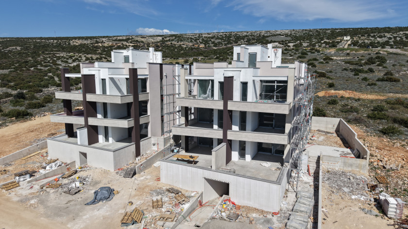 Beschreibung: Dreizimmerwohnungen zum Verkauf im Neubau (Gebäude A und B) in außergewöhnlicher Lage oberhalb des Yachthafens in Šimuni auf der Insel Pag, 1. REIHE ZUM MEER!