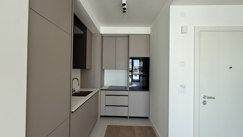 Stan se sastoji iz ulaznog dela sa ugradnim plakarom, potpuno opremljene kuhinje sa svim elementima i tehnikom, dnevnog boravka koji je dvostrano orijentisan i pruža obilje svetlosti. Pogled sa terase je prema gradskoj panorami. Stan poseduje odvojenu vešernicu, kupatilo, dve spavaće sobe od kojih je jedna master sa sopstvenim kupatilom.