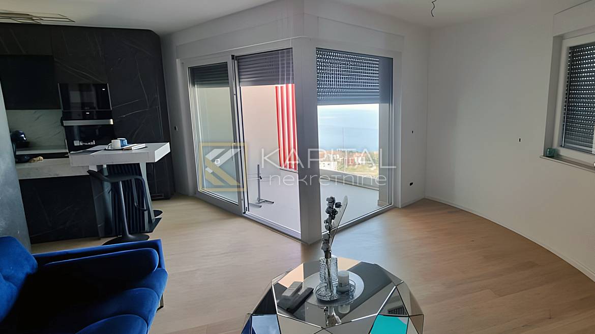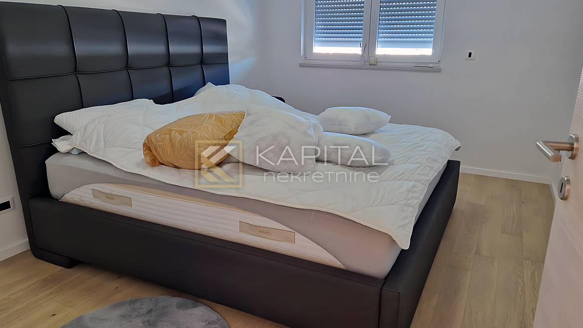 Beschreibung: Wir verkaufen eine modern eingerichtete Wohnung in einem Neubau mit einer Fläche von 77 m2. Es besteht aus einer Küche mit Esszimmer und Wohnzimmer, zwei Schlafzimmern, einem Badezimmer, einem Flur, einem Kamin und einer Speisekammer. Der kleinere Raum ist als begehbarer Kleiderschrank konzipiert. Die Loggia bietet einen wunderschönen Blick auf Opatija, den Golf und die Inseln. Die Schlafzimmer sind nach Norden ausgerichtet. Die Wohnung ist komplett mit Fußbodenheizung ausgestattet. Jedes Zimmer verfügt über einen eigenen Thermostat. Das Gebäude ist mit einer Video-Gegensprechanlage ausgestattet. Im Wohnzimmer ist eine Klimaanlage installiert. Im Preis inbegriffen sind komplette Möbel und alle Haushaltsgeräte. Zur Wohnung gehören zwei Garagenstellplätze mit einer Gesamtfläche von 25m2. Für alle Informationen rufen Sie 099/2196 353 oder 091/540-8520 an