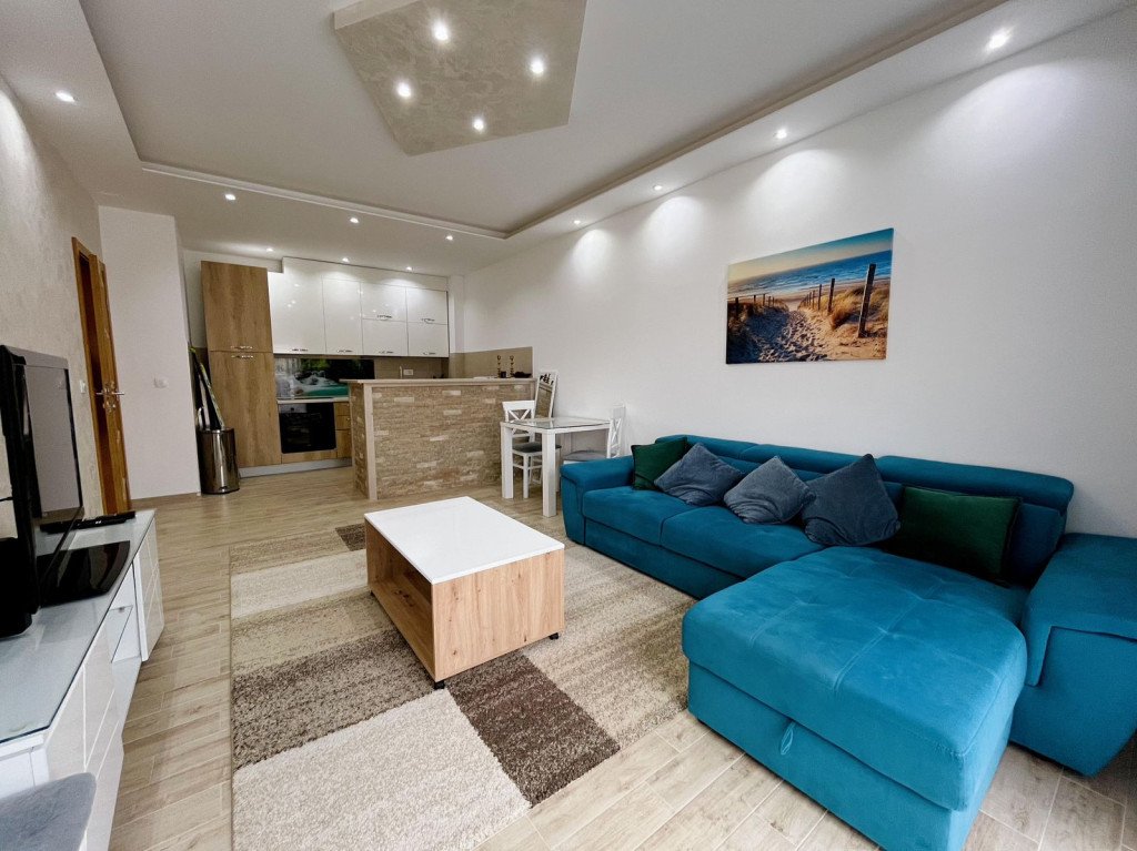 This brand new one bedroom apartment located in Kalimanj, Tivat. Close by many amenities such as restaurants, bakeries, grocery stores, Zupa park and Belane beach. Tivat center is only 800 meters away. Porto Montenenegro Yacht Marina is only 1.2 km away.