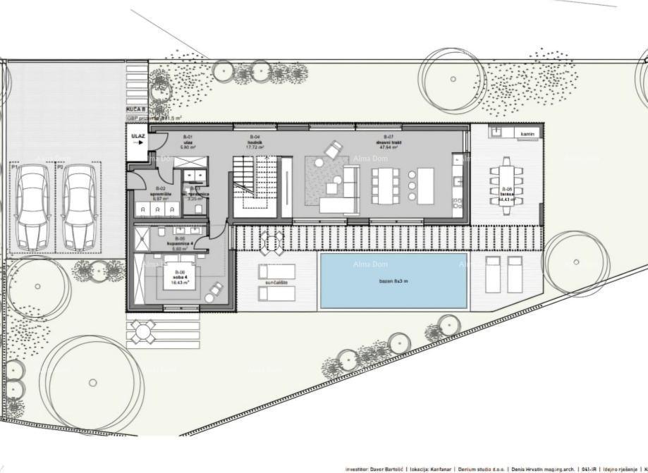 Beschreibung: Zum Verkauf steht ein schönes Baugrundstück von 672 m² in Kanfanar, mit einem Projekt zum Bau eines 237 m² großen Gebäudes und einer bezahlten Baugenehmigung. Das Grundstück bietet Meerblick und verfügt über die gesamte notwendige Infrastruktur.