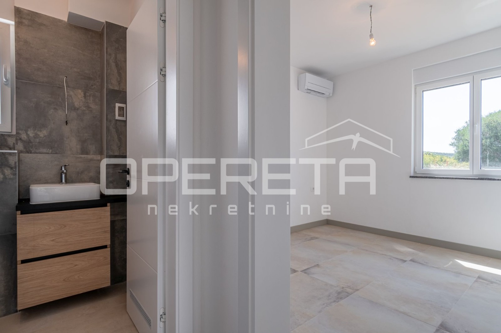 Beschreibung: In Istrien, Banjole, nur 320 m vom Meer entfernt, steht eine neue Erdgeschosswohnung zum Verkauf.Die Wohnung zeichnet sich durch hochwertige Verarbeitung und Materialien aus.Die Nettowohnfläche beträgt 129 m², die Wohnfläche 83 m².Zur Wohnung gehört ein großzügiger, 317 m² großer Garten mit Swimmingpool.Die Wohnung ist bezugsfertig und wird unmöbliert verkauft.Sie besteht aus einem geräumigen Flur, drei Schlafzimmern (eines davon mit Bad en suite), einem weiteren Badezimmer und einem Wohnzimmer mit Küche und Essbereich sowie Zugang zu einer überdachten Terrasse und dem Swimmingpool. Jedes Zimmer ist mit einer Mitsubishi-Klimaanlage ausgestattet. Die gesamte Wohnung verfügt über eine elektrische Fußbodenheizung mit Thermostaten zur individuellen Temperaturregelung.Die Böden sind mit hochwertigen Lamborghini-Keramiken belegt. Zur Wohnung gehören zwei Parkplätze, eine Garage und ein Abstellraum.Erstklassige Lage in einer der exklusivsten Wohngegenden der Gemeinde Medulin! Die ruhige Lage in Strandnähe macht diese Wohnung ideal für einen Urlaub oder zur touristischen Vermietung....