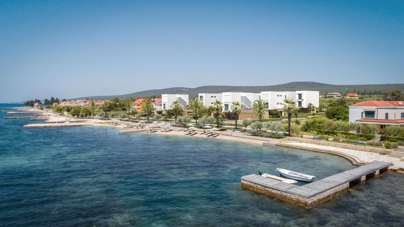 Beschreibung: Einzigartiger 1. Reihe Komplex von Luxuswohnungen, direkt am Strand!Eine luxuriöse Erdgeschosswohnung steht zum Verkauf in einem neu gebauten, exklusiven Komplex, der direkt an der Küste im Zadar-Gebiet von Dalmatien liegt. In der ersten Reihe zum Meer gelegen, bietet die Wohnung eine Mischung aus modernem Komfort, raffiniertem Design und erstklassiger Bauqualität. Sie verfügt über eine Netto-Wohnfläche von 50,60 m², eine geräumige Terrasse von fast 25 m² und einen privaten Garten von 25,5 m² sowie einen zugewiesenen Parkplatz von 11,5 m².Der Innenraum ist offen gestaltet, wobei Küche, Ess- und Wohnbereich einen einzigen zusammenhängenden Raum bilden. Zwei Schlafzimmer und ein Badezimmer, das mit hochwertiger Ausstattung ausgestattet ist, vervollständigen den Wohnraum. Hohe Decken verstärken das Gefühl von Offenheit – Wohn- und Essbereiche erreichen 300 cm, Schlafzimmer 290 cm und Badezimmer sowie Flure 285 cm....