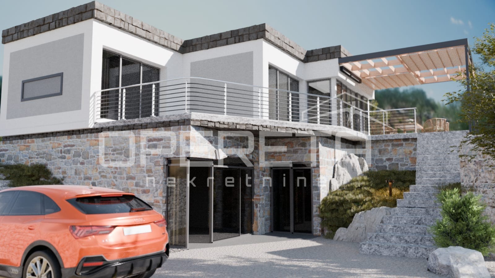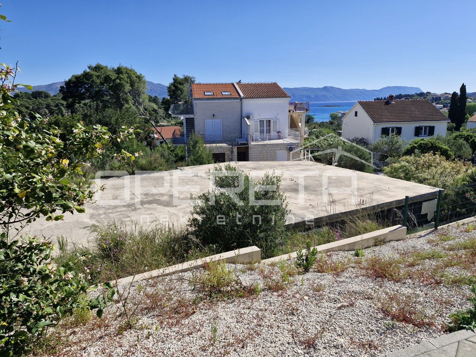 Beschreibung: Modernes Haus mit Pool und mediterranem Garten, Lumbarda, Insel KorčulaEine ideale Gelegenheit zum Kauf eines Neubaus, gelegen in ruhiger und erhöhter Lage mit Meerblick. Das Objekt ist als funktionale und moderne Einheit konzipiert, die modernes Design mit traditionellen Elementen der lokalen Architektur verbindet.Große Glasflächen verbinden den Innen- und Außenbereich und lassen den ganzen Tag über viel Tageslicht herein. Im Untergeschoss befindet sich eine separate Einzimmerwohnung mit einer Fläche von 60 m², die teilweise in den Felsen eingelassen ist und somit im Sommer für natürliche Kühle und zusätzliche Isolierung sorgt.Das Erdgeschoss ist in zwei funktionale Flügel unterteilt, jeweils mit zwei Schlafzimmern. Die Badezimmer sind kompakt und praktisch organisiert, während die Einbauschränke dezent in Wandnischen integriert sind. Die Böden bestehen aus modernen Materialien auf Epoxidharzbasis, und die Konstruktion des Hauses kombiniert tragende Holzelemente (Lärche) mit Stahlbetonfundamenten und Kellerwänden. Die Fassadenverkleidung wurde im ETICS-System mit 12 cm Wärmedämmung und einem abschließenden Silikatputz ausgeführt....