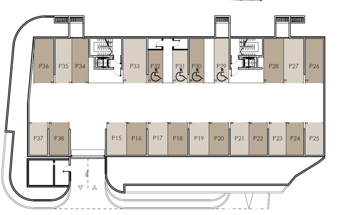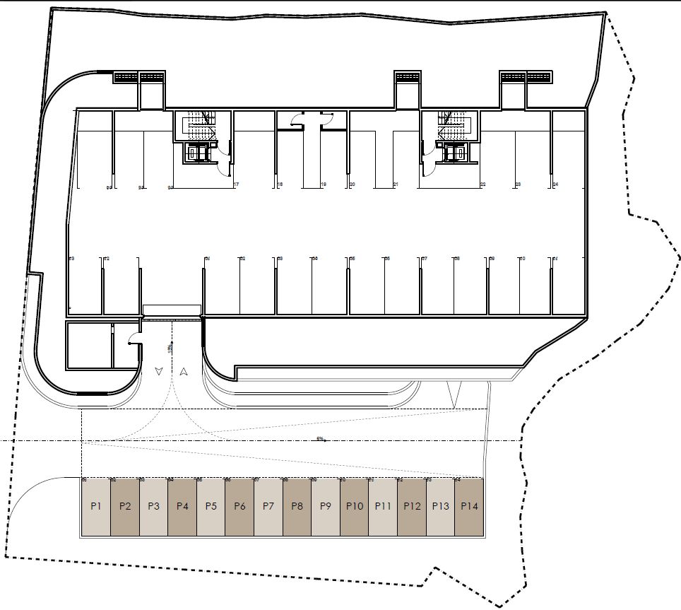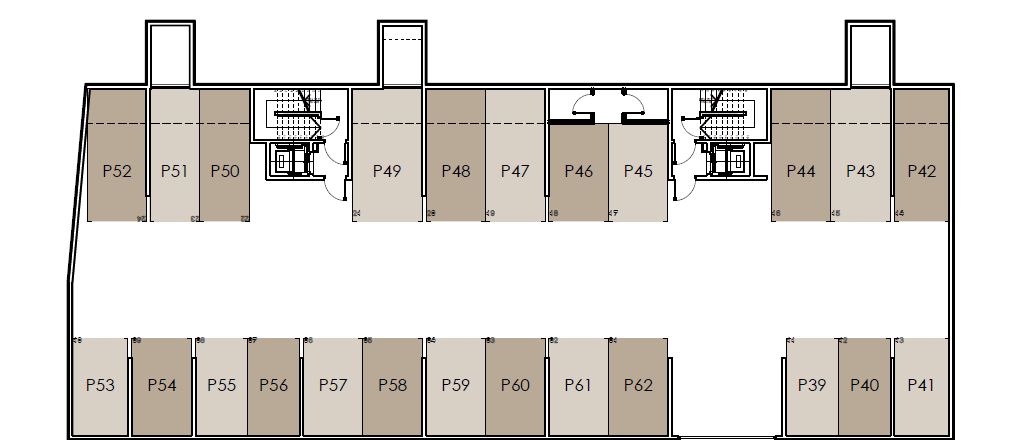 Zgrada se sastoji od ukupno 7 etaža: etaža -2 i -1 na kojoj se nalaze garažna parkirna mjesta, prizemlja i 4 kata povezanih liftom i stubištem s ukupno 50 stambenih jedinica.