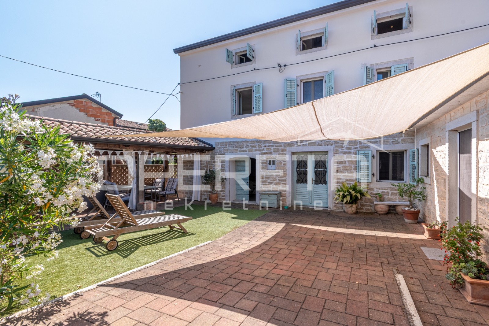 Beschreibung: Istrien, Umgebung Poreč - Steinhaus mit HofIn einem ruhigen Dorf in der Umgebung von Poreč befindet sich dieses schöne Steinhaus mit einer Fläche von 157 m², das sich über drei Etagen erstreckt: Erdgeschoss, erster Stock und Dachgeschoss. Im Erdgeschoss gibt es ein geräumiges, offenes Konzept mit einer Küche, einem Esszimmer und einem Wohnzimmer sowie eine praktische Gästetoilette mit Waschküche.Im ersten Stock warten zwei Schlafzimmer auf Sie, jedes mit eigenem Bad, während das Dachgeschoss zwei zusätzliche Schlafzimmer mit einem gemeinsamen Bad bietet. Für eine angenehme Temperatur im Winter sorgt ein Holzofen, und im Sommer sorgen Deckenventilatoren im ersten Stock und Klimaanlagen im Dachgeschoss für Abkühlung.Ein zusätzlicher Raum ist ideal für eine Sauna oder ein Arbeitszimmer, und der 90 m² große Hof bietet ausreichend Platz zum Entspannen. Alle Möbel bleiben im Haus. Es ist auch wichtig zu erwähnen, dass das Dorf einen kleinen Laden hat.Entfernung zum Meer: 4 kmEntfernung zur nächstgelegenen größeren Stadt (Poreč): 5 km