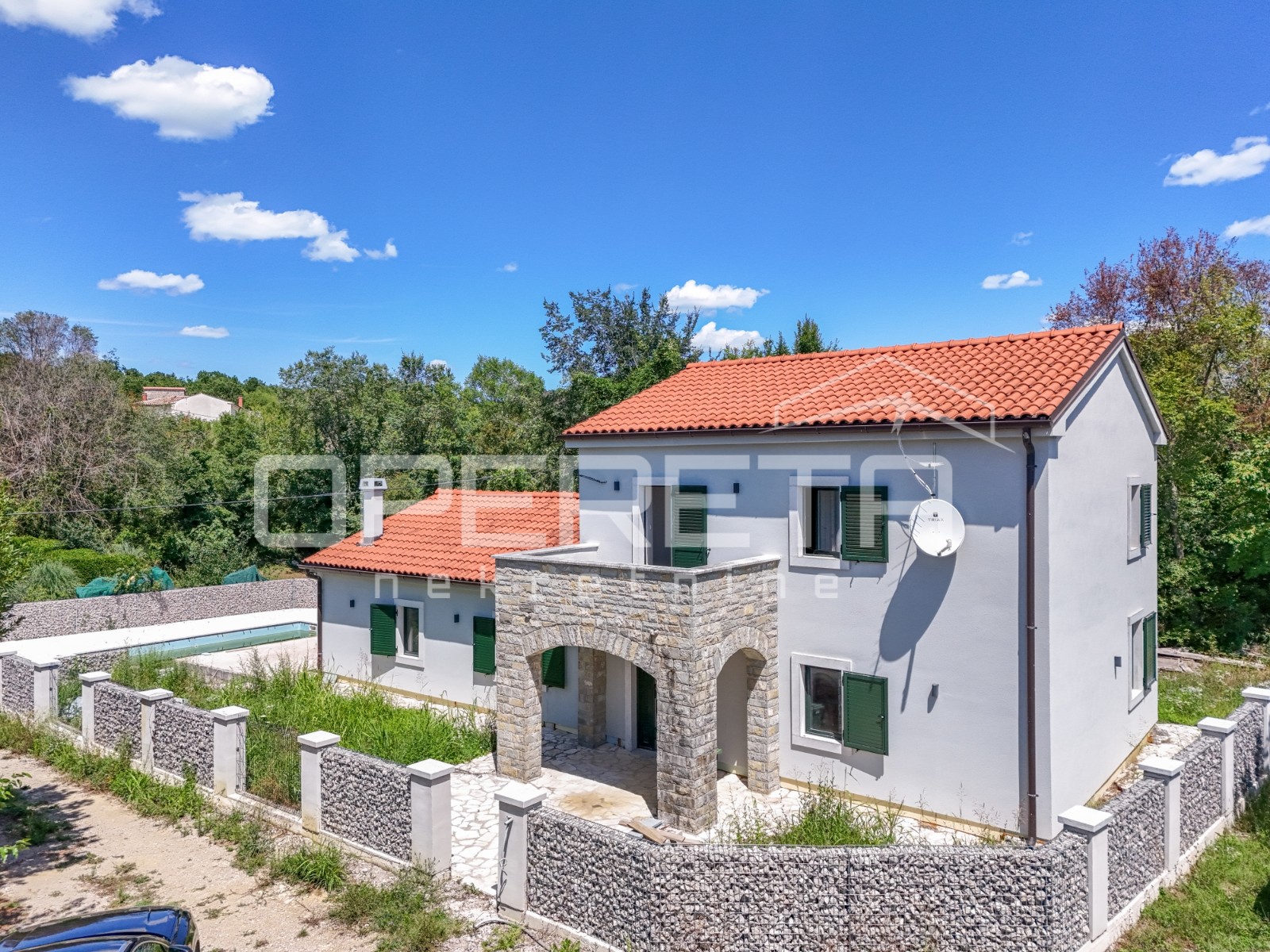 Beschreibung: Im Herzen eines authentischen istrischen Dorfes, umgeben von unberührter Natur unweit von Motovun, befindet sich dieses sorgfältig adaptierte Steinhaus, das eine perfekte Mischung aus traditioneller istrischer Architektur und modernen Wohnstandards darstellt. Mit 139 m² Wohnfläche auf einem großzügigen Grundstück von 971 m² bietet die Immobilie absolute Ruhe, Privatsphäre und einen entspannenden Blick auf Wald und grüne Landschaft.Der liebevoll angelegte Garten schafft eine idyllische Umgebung zum Entspannen und Verweilen. Hier finden Sie einen Swimmingpool mit großzügigem Sonnenbereich, ideal zum Genießen warmer Tage. Für Liebhaber von Zusammenkünften im Freien gibt es zudem eine Außenküche mit Grill, eine weitläufige Grünfläche und drei gesicherte Parkplätze.Das Innere des Hauses ist in zwei funktionale Etagen aufgeteilt:Das Erdgeschoss empfängt Sie mit einem Eingangsbereich und einem praktischen Abstellraum unter der Treppe, einem Flur, einer Gästetoilette und einem komfortablen Schlafzimmer mit eigenem Bad. Den zentralen Bereich des Erdgeschosses bildet das geräumige offene Wohnzimmer mit Küche und Essbereich von fast 50 m²....