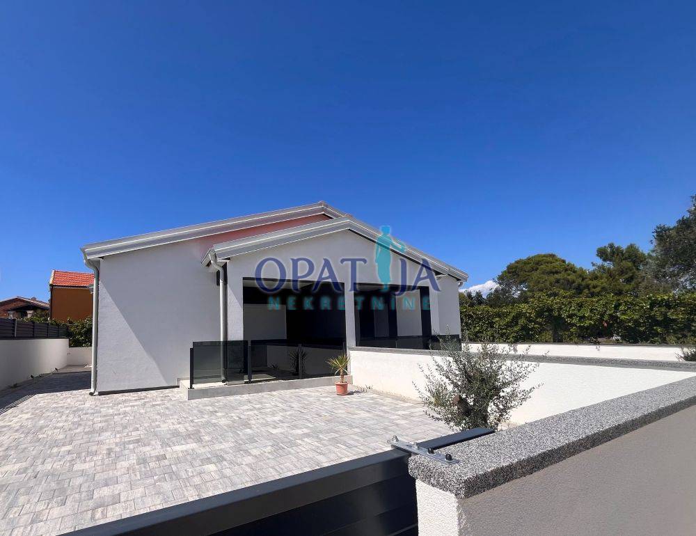 Auf der beliebten Ferieninsel Vir erwartet Sie diese moderne Doppelhaushälfte – perfekt für alle, die ein Haus am Meer in Kroatien kaufen möchten. Auf einem 177 m² großen, privaten Grundstück mit Garten bietet das Haus 56 m² Wohnfläche, aufgeteilt in zwei Schlafzimmer (jeweils mit integriertem TV), ein modernes Bad sowie einen offenen Wohn-, Ess- und Küchenbereich.