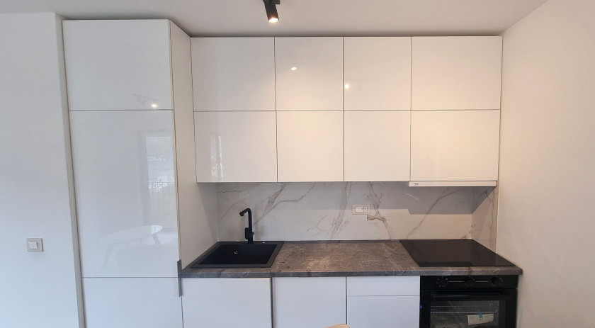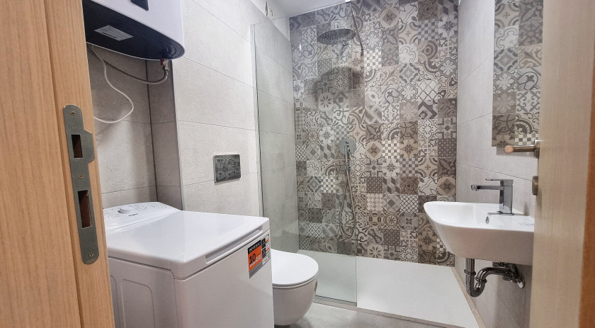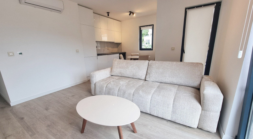Die Wohnung befindet sich im zweiten Stock und besteht aus: Flur, Wohnzimmer mit integrierter Küche, Schlafzimmer, Badezimmer und einer kleinen Terrasse. Das Apartment verfügt über Fußbodenheizung und Klimaanlage.