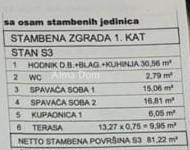 Neu im Angebot! Zum Verkauf steht die Wohnung S-3 mit einer Fläche von 81,22 m² im 1. Stock eines modernen Gebäudes mit insgesamt 8 Wohnungen.