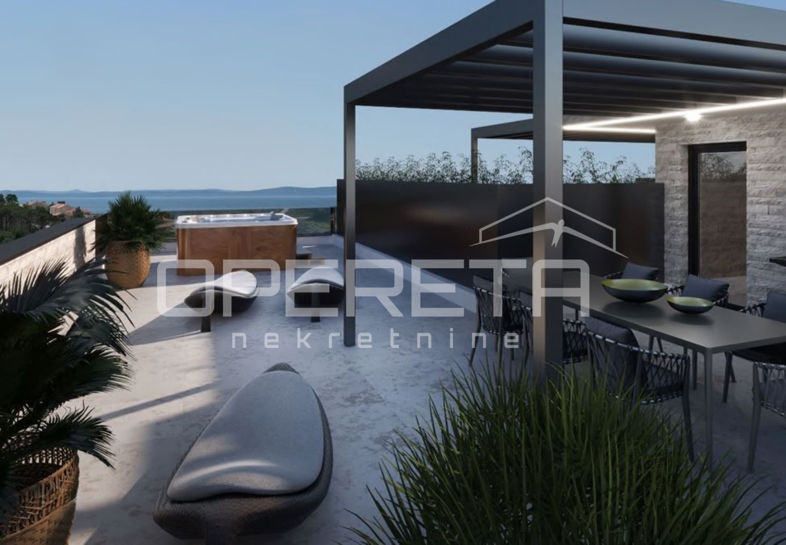 Beschreibung: Privlaka/Zadar – Luxusprojekt 70 m vom Meer, Penthouse A201Nur 70 Meter vom Meer entfernt, im ruhigen Privlaka bei Zadar, entsteht ein nahezu fertiggestelltes Projekt, das bald bezugsfertig ist und den Wohnstandard auf ein völlig neues Niveau hebt. Drei anspruchsvolle Villen – Astoria, Estera und Gina – sind für all jene konzipiert, die mehr als nur eine Immobilie suchen: Sie suchen die perfekte Balance zwischen Luxus, Komfort und Prestige.Die Lage eröffnet ein außergewöhnliches Panorama – das kristallblaue Adriatische Meer, sonnenverwöhnte Inseln in der Nähe und Sonnenuntergänge, die Privlaka zur schönsten Bühne Westdalmatiens machen. Jede Wohnung ist sorgfältig gestaltet, um modernes Design mit zurückhaltender Eleganz zu verbinden, während die großzügigen Terrassen einen privaten Rückzugsort mit atemberaubender Aussicht bieten.Wohnung A201 befindet sich im 2. Stock und besteht aus einem Flur, einem Badezimmer, einem offenen Wohnbereich mit Küche und Esszimmer, einem überdachten Balkon, Dachterrasse 1, einer Dachloggia, einer internen Treppe, zwei geräumigen Schlafzimmern und einem Parkplatz....