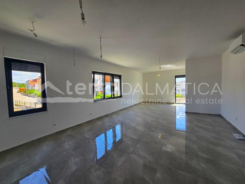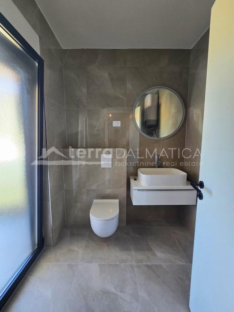 Beschreibung: Zum Verkauf steht eine geräumige zweistöckige Wohnung im ersten und zweiten Stock eines modernen Wohngebäudes in einer ruhigen Umgebung unweit von Šibenik. Mit einer Gesamtfläche von 140 m² bietet dieses Apartment eine ideale Kombination aus Komfort, moderner Ausstattung und Blick auf das Meer und die Natur. Im 50 m² großen Erdgeschoss befinden sich ein Wohnzimmer, eine Küche mit Esszimmer, ein Flur und ein Gäste-WC sowie zwei Balkone. Im zweiten Obergeschoss mit 55 m² befinden sich drei gemütliche Schlafzimmer, zwei moderne Bäder mit elektrischer Fußbodenheizung, ein Flur und eine die Etagen verbindende Treppe sowie ein zusätzlicher Balkon. Die Wohnung ist mit Aluminiumschreinereiarbeiten und elektrischen Rollläden ausgestattet und für die Klimatisierung sorgen vier Innenklimaanlagen. Im Preis inbegriffen ist ein Parkplatz in der Garage des Gebäudes. Das Besondere an dieser Wohnung ist die große Dachterrasse von 110 m², die einen Blick auf das Meer, die Natur und die Umgebung bietet – ein perfekter Ort zum Entspannen, für gesellige Stunden oder um den Sonnenuntergang zu genießen....