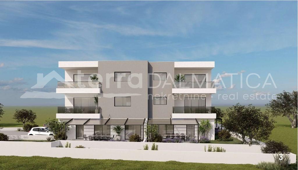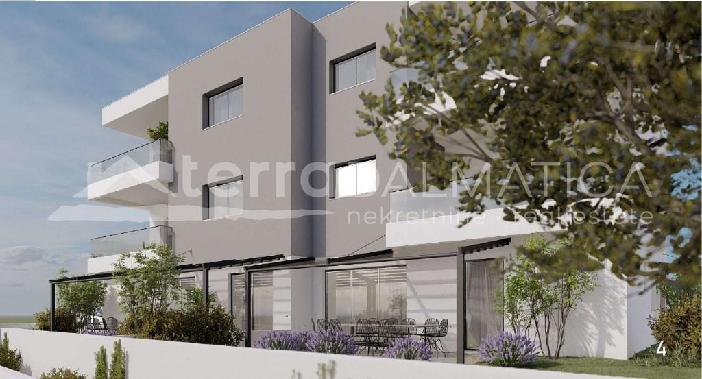 Beschreibung: In Brodarica steht eine modern eingerichtete Drei-Zimmer-Wohnung mit einer Gesamtfläche von 111 m² zum Verkauf, bezugsfertig. Eine Schule, ein Kindergarten, Banken und Geschäfte sind nur wenige Autominuten entfernt. Die Wohnung liegt nur 300 Meter vom Meer entfernt. Die Wohnung A1 befindet sich im Erdgeschoss eines modernen Gebäudes mit insgesamt sieben Wohneinheiten. Sie besteht aus einem Eingangsbereich, der in einen Flur führt, auf dessen rechter Seite sich ein praktisches Gäste-WC befindet. Vom Flur gelangt man in die Küche, die mit einem geräumigen Wohn- und Esszimmer verbunden ist, die durch große Glasflächen viel Licht erhalten. Vom Wohnzimmer aus gelangt man auf eine geräumige Terrasse, die zum Entspannen einlädt. Der private Teil der Wohnung besteht aus drei Schlafzimmern, zwischen denen sich das Badezimmer befindet, was für Zweckmäßigkeit und Funktionalität sorgt. Zur Wohnung gehören ein Garten (insgesamt 108 m² Grundstück), zwei Parkplätze und ein Abstellraum im Keller. Die Wohnung ist mit hochwertigen Materialien und modernen Lösungen ausgestattet, darunter Fußbodenheizung und Klimaanlage....