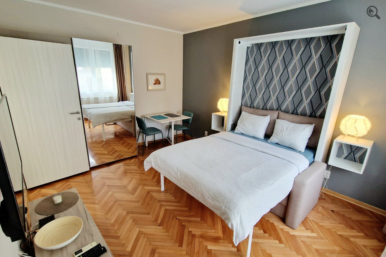 Beschreibung: Apartmani u Beogradu- Apartman Nora Zemun nalazi se u jednom od najlepših delova Zemuna, u ulici Starca Vujadina. Po strukturi je studio apartman smešten na prvom spratu stambene zgrade. Stan je potpuno renoviran, moderno dizajniran, funkcionalan i kompletno opremljen za prijatan boravak do 2 osobe. Opremljen je bračnim krevetom, kuhinjom koja sadrži sve neophodno za kraći ili duži boravak i kupatilom sa tuč kabinom. Kada je u pitanju prateći sadržaj, gostima su na raspolaganju klima uredjaj, centralno grejanje, čisti peškiri, posteljina, pegla za veš. U blizini staje veliki broj linija gradskog prevoza što čini odličnu povezanost sa svim delovima grada. Ukoliko dolazite sopstvenim prevozom, možete parkirati duž ulice, ali mesto nije rezervisano.