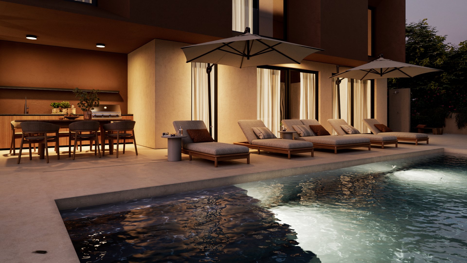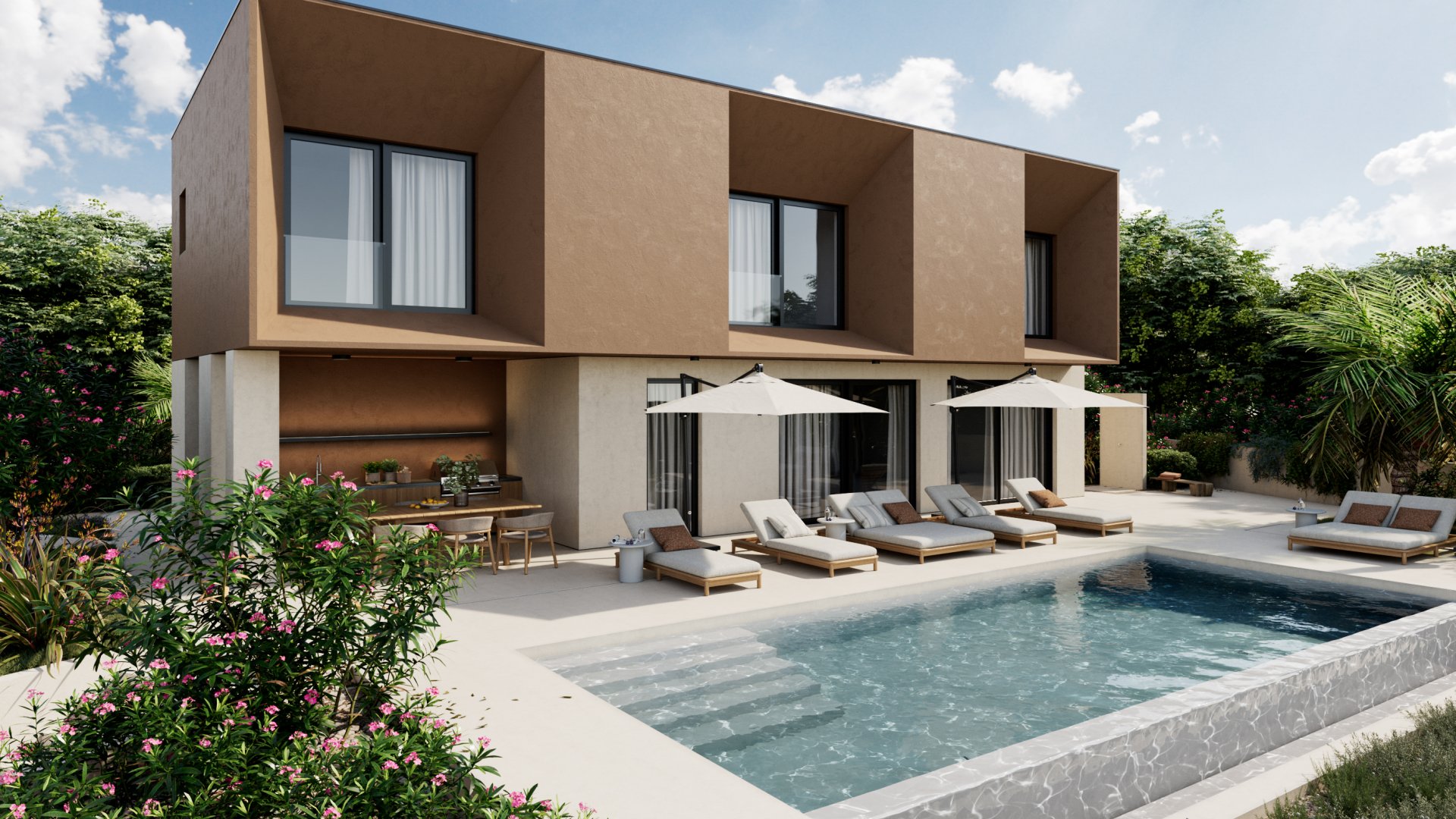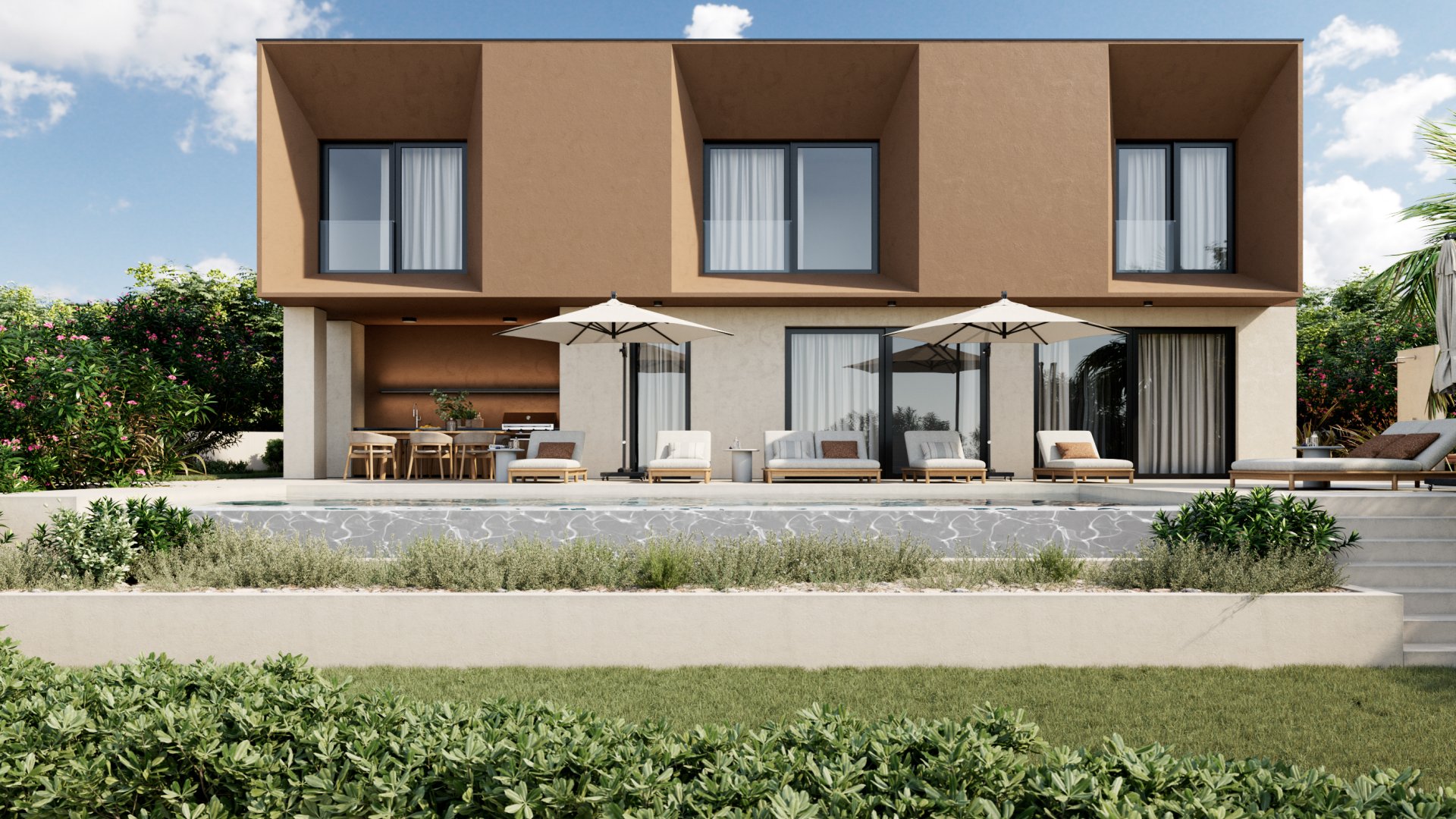 Beschreibung: Die Villa bietet ein modernes, offenes Wohnkonzept, das sich nahtlos mit dem Außenbereich – Pool und Garten – verbindet. Die durchdachte Anordnung auf einer Ebene sorgt für...