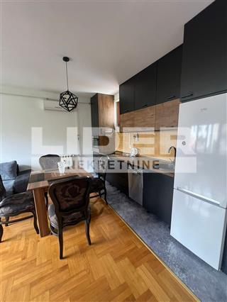 Potpuno namešten i opremljen: internet, TV, klima, veš mašina, mašina za sudove, frižider, šporet, rerna, ležajevi, plakari, ugradni plakar, kancelarijski nameštaj