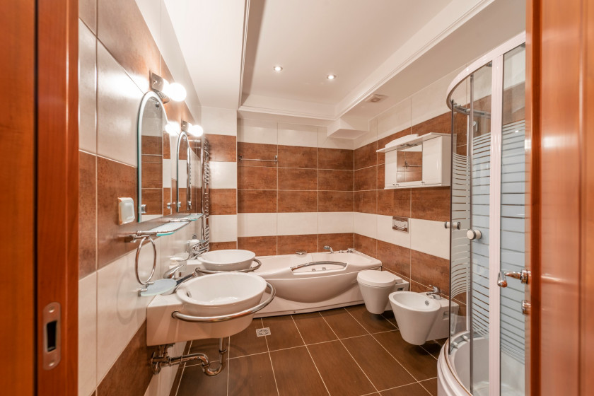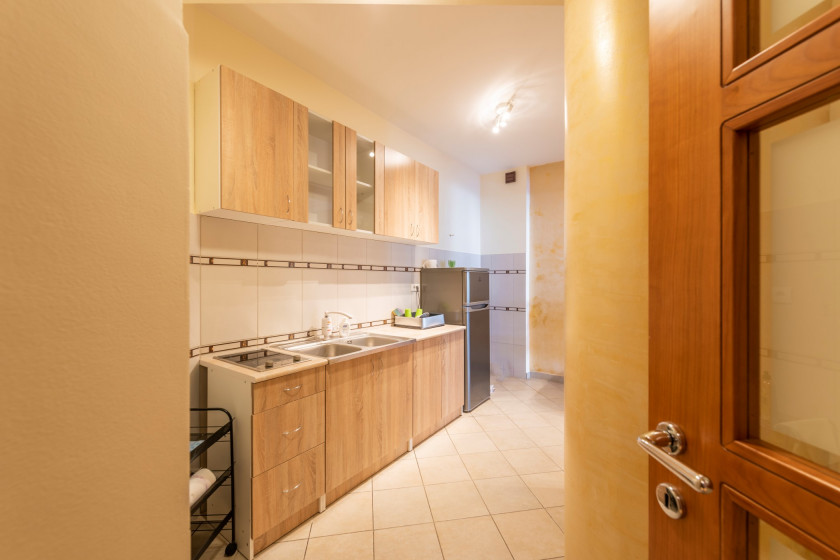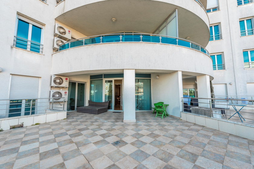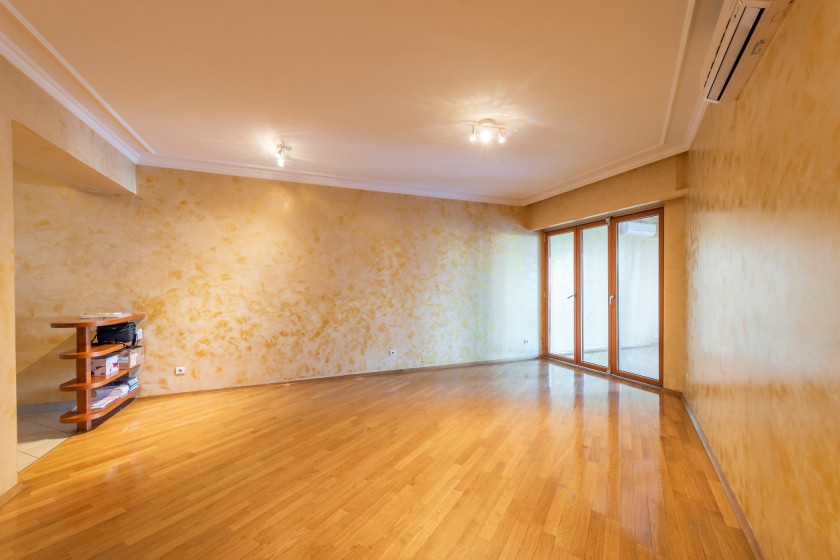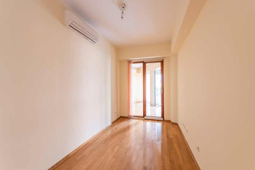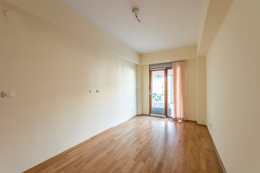 Two-and-a-half-bedroom apartment, in the Nikić Business Center building, 124m2 including terraces. It consists of a living room with a dining room, a kitchen, two bedrooms, a bathroom, a toilet, an additional room like a study located in front of the terrace, and a large terrace.