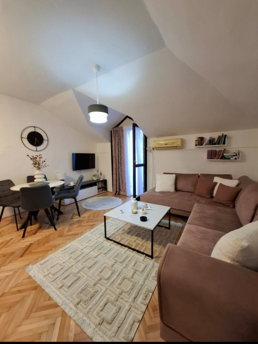 Beschreibung: Izdaje se stan na dan u Podgorici, naselje Malo Brdo-lokacija posle Galerije Most. Stan posjeduje sve što vam je potrebno za udoban boravak. Stan posjeduje prostranu ugaonu koja ima sistem na rasklapanje i pretvara se u udoban ležaj, pogodan za dvije osobe. Dostupni su svi kućanski aparati.