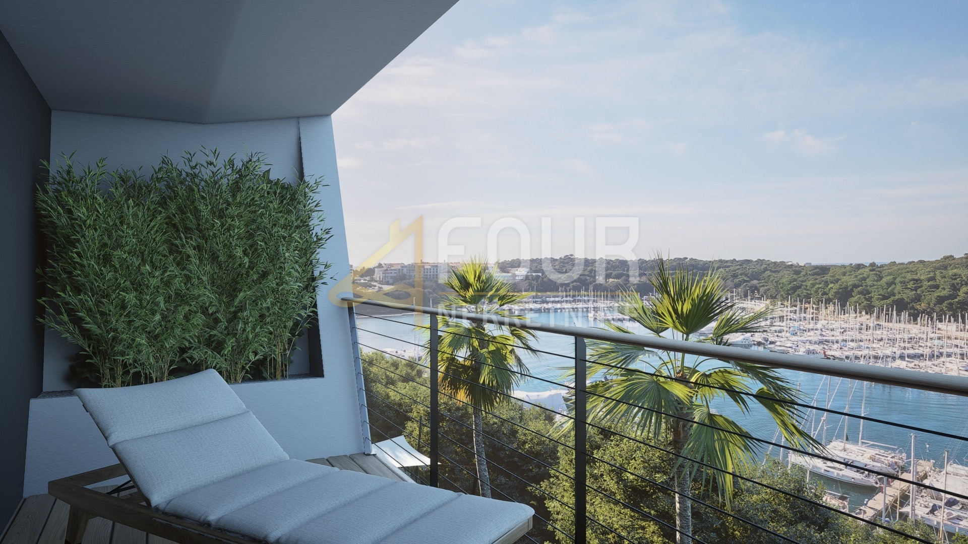Kompleks pruža savršenu ravnotežu privatnosti i blizine svim sadržajima, a iz stanova se pruža očaravajući pogled na more i brodice usidrene u zaštićenoj marini Veruda.