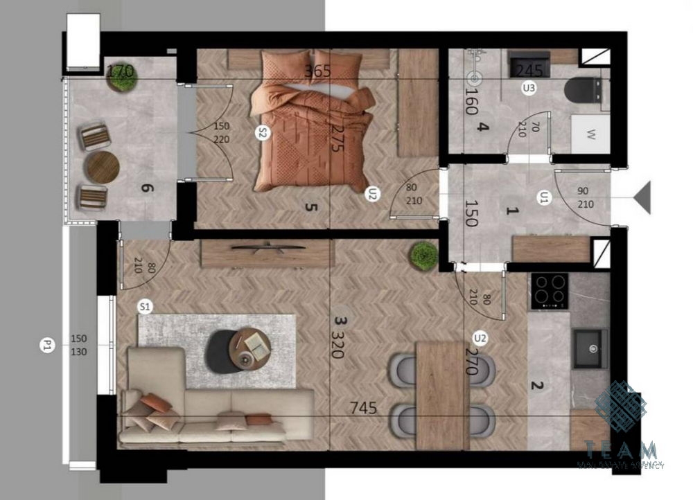 Beschreibung (Englisch): A one-bedroom apartment of 51 m², currently under construction, is for sale on the 6th floor of a residential building in Bar. This apartment offers a functional and well-lit layout, ideal for a modern lifestyle.