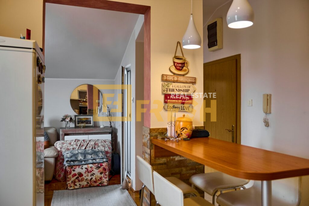 – Structure: spacious living room and kitchen, bedroom, bathroom, two balconies (one converted into a storage room)