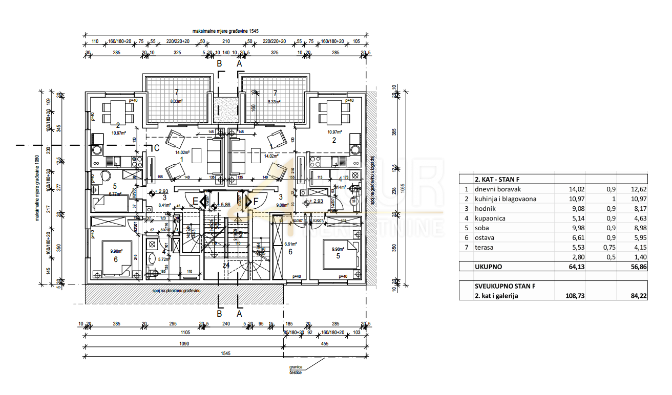 Dvoetažni stan ukupne površine 84.22m2.
