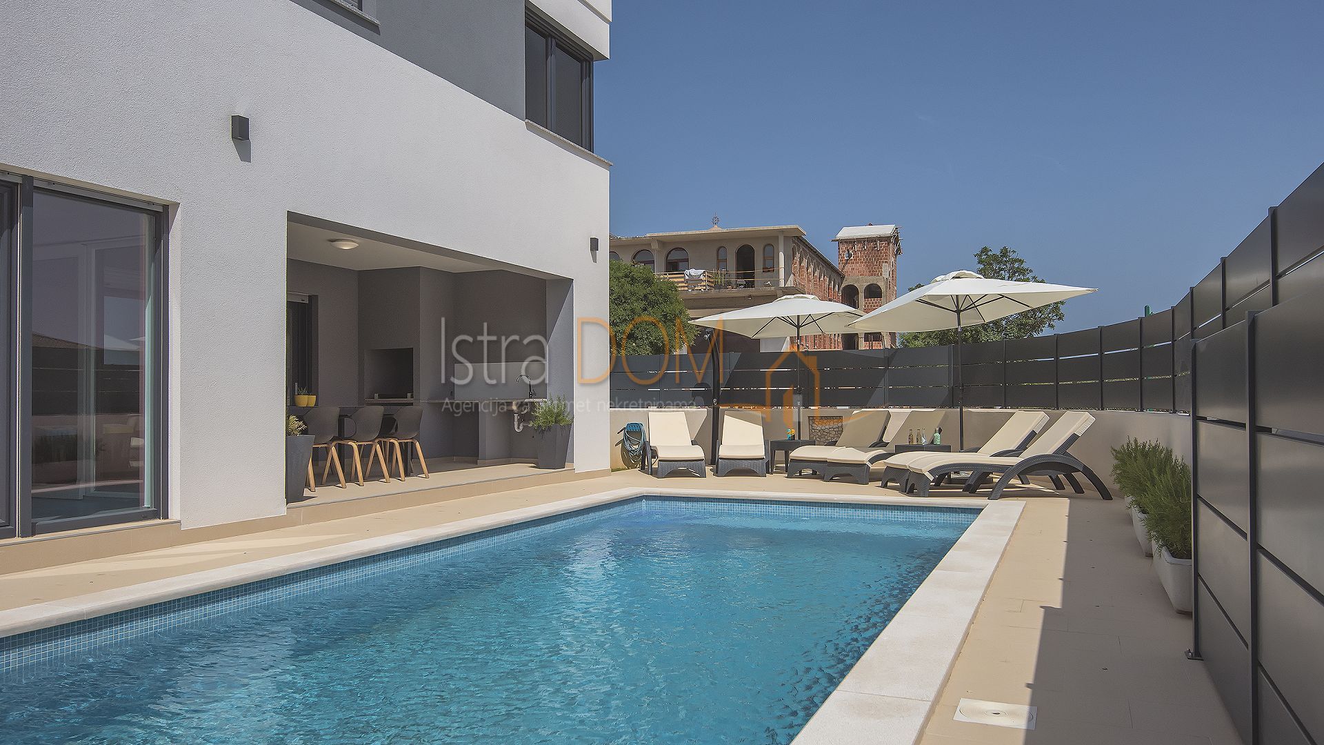 Wir verkaufen eine wunderschöne zweistöckige Villa mit Swimmingpool in der Nähe von Pula. Diese moderne Villa bietet 172 m² Wohnfläche auf einem 388 m² großen Grundstück, ideal für eine Familie oder als Mietinvestition.