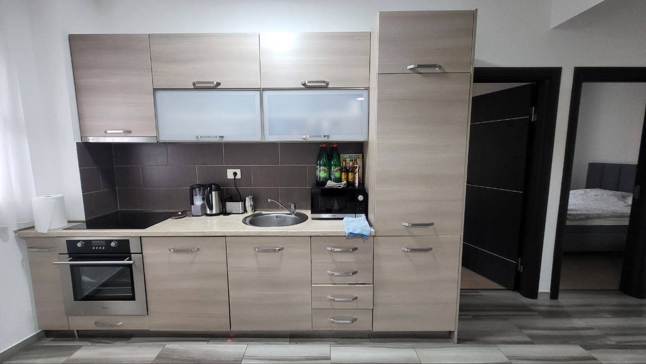 ?Die Wohnung befindet sich im Supermarktviertel Ideal, nur 200 Meter vom Meer entfernt. Unter dem Haus befindet sich eine Bushaltestelle, in der Nähe ein Gemischtwarenladen mit russischen Produkten.