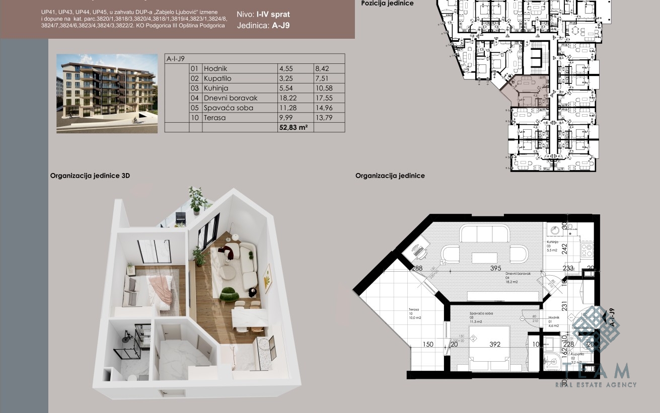Beschreibung (Englisch): A one-bedroom apartment with an area of 52.83 m² is for sale, available on all floors of the residential building under construction in Pod Ljubović, Podgorica.