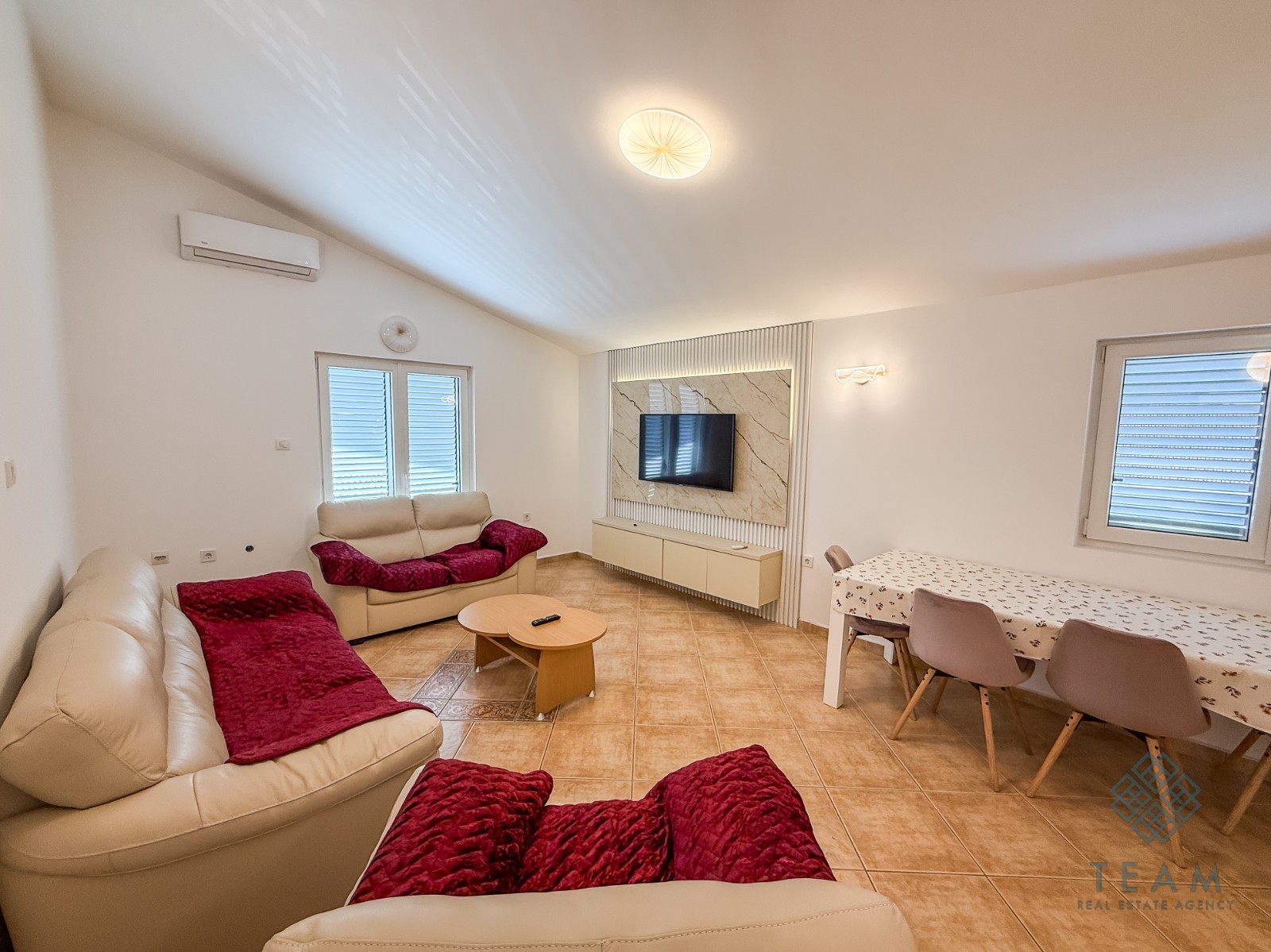 Beschreibung (Englisch): A spacious family house of 300 m² is available for rent in the quiet neighborhood of Masline, just 2 km from the center of Podgorica. The property sits on a fenced plot of 420 m², offering privacy and a secure space for family living.