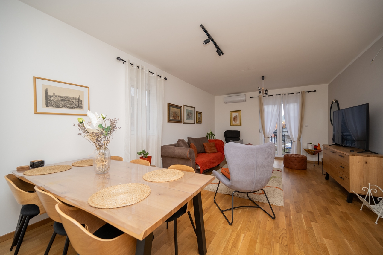 Beschreibung (Englisch): Two bedroom furnished new apartment, surface area 75m2, Cetinje, 3rd floor (the building has an elevator), multisplit heating and cooling system. Possibility of compensation for an apartment in Podgorica.