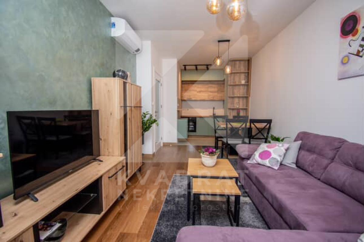 Beschreibung (Englisch): One-room apartment for rent, surface area 50m2, on the first floor of a residential building, in the Green level building, in Tološka šuma - Podgorica.