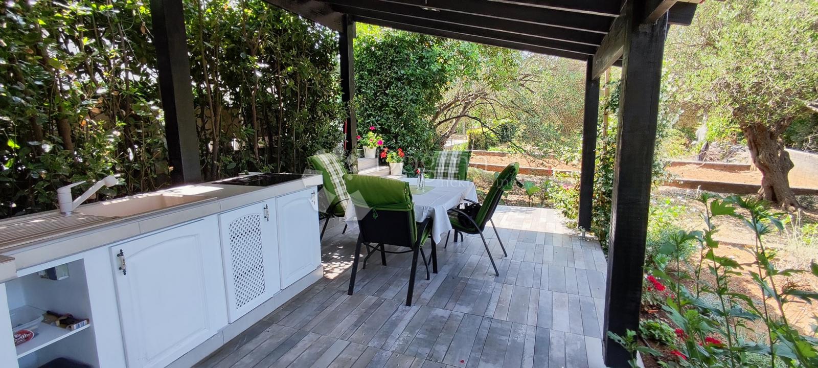 Raspored je funkcionalan: dvije prostrane spavaće sobe s TV-om od kojih se jedna, po potrebi, može koristiti kao dnevni boravak, kuhinja, kupaonica i odvojeni WC. Fasada je termoizolirana, ugrađena je klima, provedena je priprema za podno grijanje. Okruženje je zeleno i privatno, s maslinama, smokvama i mandarinama.
