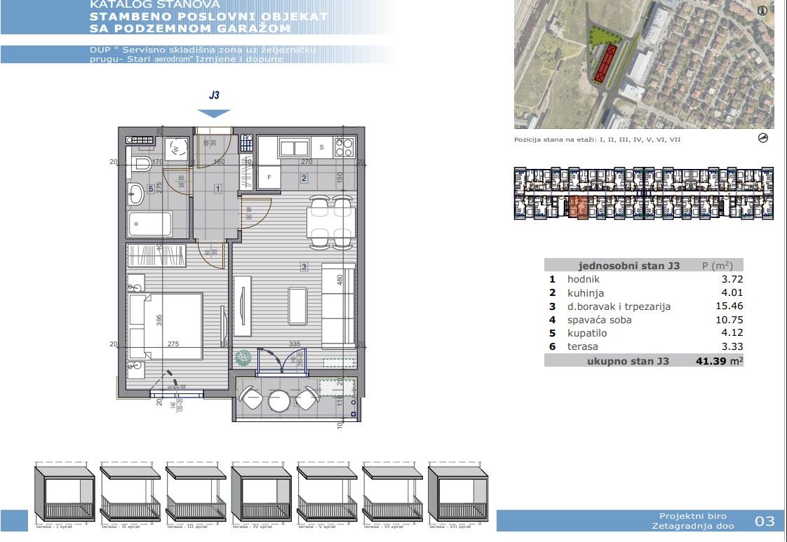 Stan se nalazi na prvom spratu stambene zgrade, kvadratura stana 41.4m2, po strukturi jednosoban Rok završetka izgradnje objekta 01.05.2027. godine.