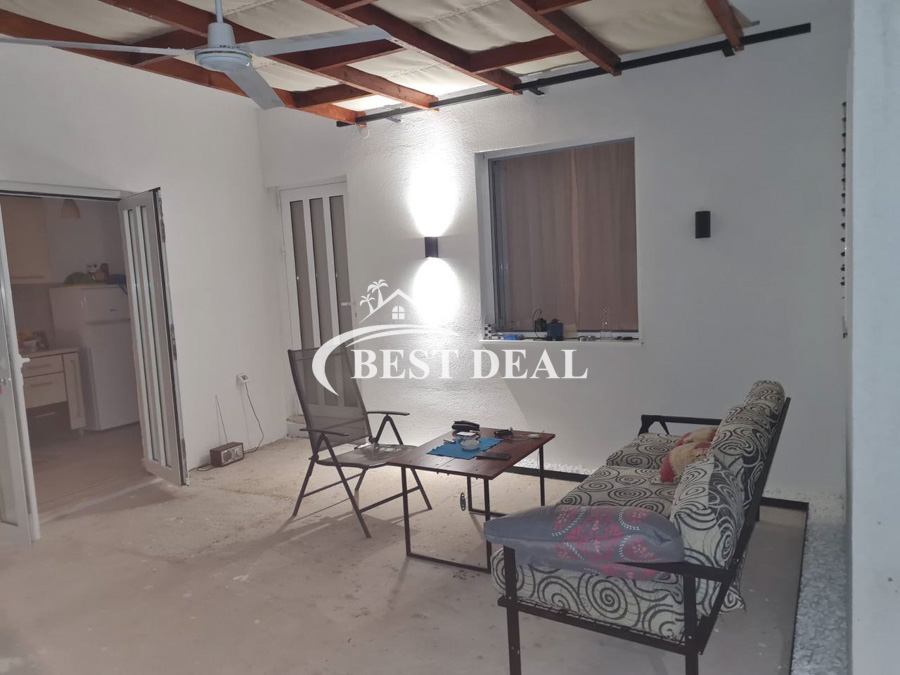 Aufteilung: 2 Schlafzimmer, Küche, Wohnzimmer, Bad, großzügige überdachte Terrasse.