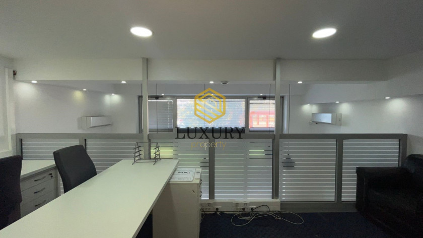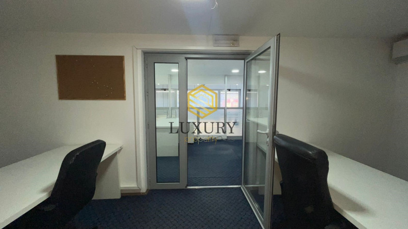 Poslovni prostor opremljen kao kancelarija je smješten na prizemlju profesorske zgrade. Podijeljen je na tri sprata iste ili slične kvadrature. Ukupna kvadratura cijelog prostora je 140m2.