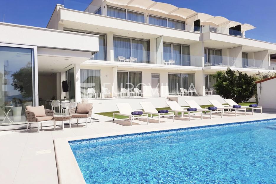 Beschreibung: Eine elegante und moderne Residenz in bester Lage von Zadar - Borik, in unmittelbarer Nähe zum Meer und allen Annehmlichkeiten.Das Anwesen befindet sich auf einem Grundstück von 1.299 m², mit einem Hauptgebäude von 950 m² Bruttogeschossfläche (BGF), voll ausgestattet und möbliert für gehobene touristische Nutzung.Die Residenz umfasst 3 Apartments, 10 Zimmer und 1 Restaurant, alle im Hauptgebäude untergebracht.Jede Wohneinheit wurde sorgfältig mit dem Schwerpunkt auf Komfort und zeitgemäßem Luxus gestaltet - klimatisierte Zimmer, Aluminiumfenster, Designermöbel, italienische erstklassige Keramik, moderne Badezimmer und elegante Terrassen mit Blick auf den Pool, das Meer oder den mediterranen Garten.Das Interieur strahlt Eleganz und Minimalismus aus - helle Töne, hochwertige Materialien und tadellose Verarbeitung schaffen eine angenehme, moderne Atmosphäre.Der Außenbereich bietet zwei Swimmingpools mit Sonnenliegen und Liegeflächen, eine Lounge-Zone, einen angelegten Garten und einen Frühstücksbereich....