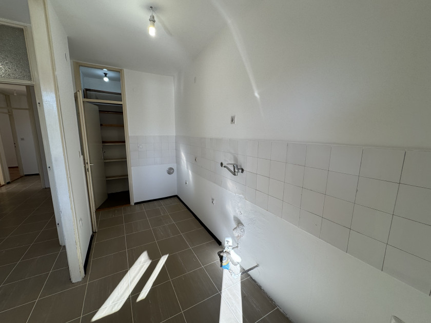 * Raumaufteilung: Küche mit Abstellraum, Esszimmer, Wohnzimmer mit Zugang zur Terrasse, zwei Schlafzimmer (eines mit eigener Terrasse), großes Badezimmer, zusätzliches WC und Flur.