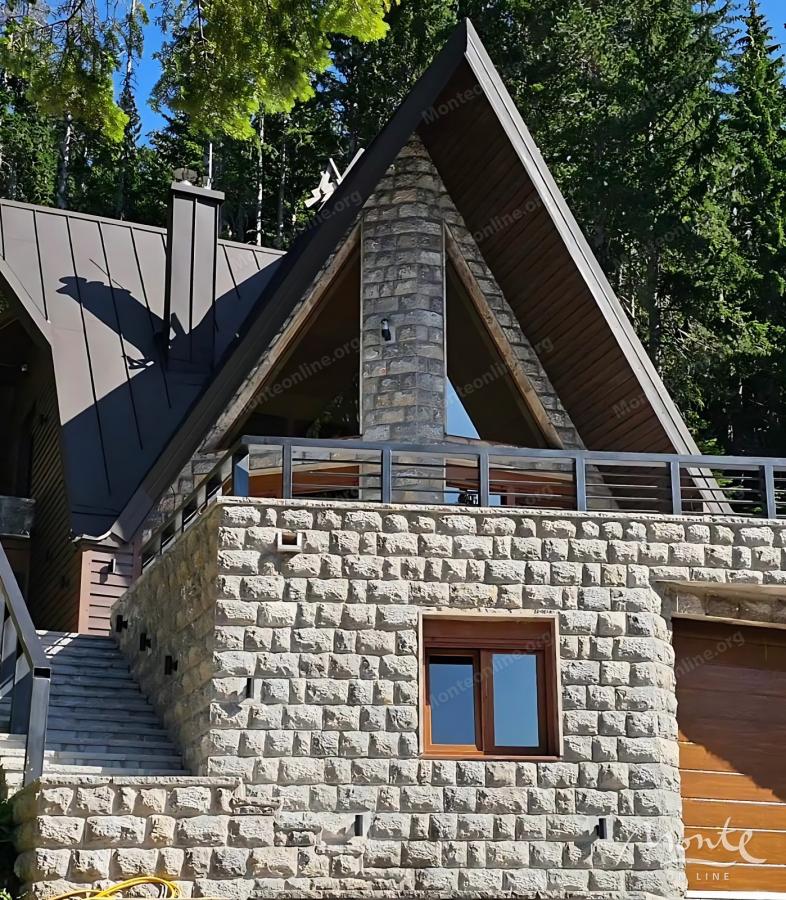 Kuća se nalazi na parceli od 660 m², sa velikim zelenim travnjakom i tri terase koje nude slikovit pogled na prirodu i planine.