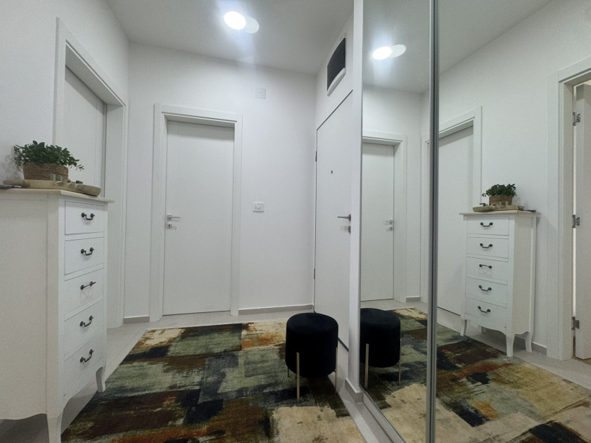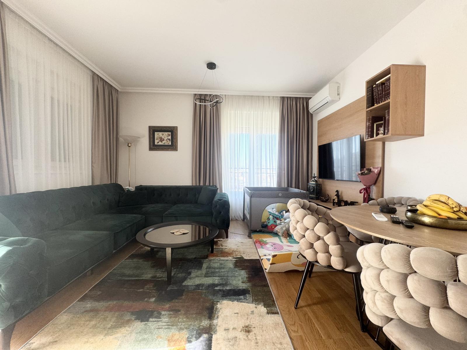 The apartment is 66m2, on the third floor, well lit and with a good position in the entrance. The building has two elevators, closed in 2025. The apartment is sold furnished with new things, and has a multi-split heating-cooling system.