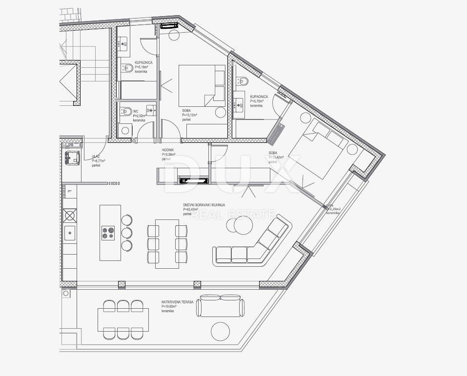 Exklusive Gelegenheit bei Dux Real Estate: Wohnung Nr. 3 zu verkaufen, 105,93 m², davon 9,80 m² Terrasse mit herrlichem Meerblick.