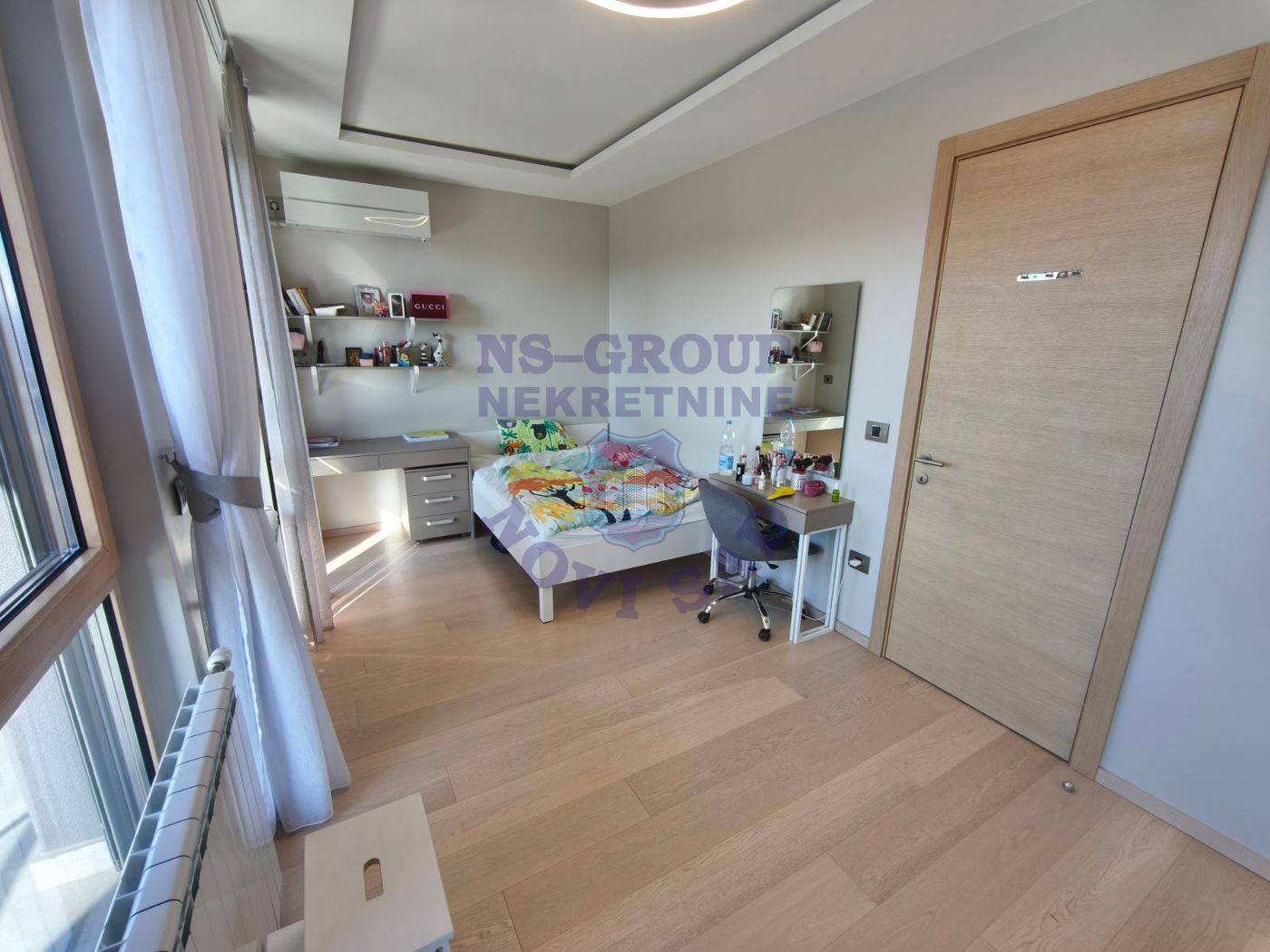 Beschreibung: Predstavljamo Vam fantastičan komfroran četvorosoban stan od ukupno 220m2 sa terasama u novoj zgradi na Bulevaru oslobođenja! Stan je kompletno opremljen nameštajem po meri, ulazna vrata su blindirana, a stolarija je aluminijum drvo sa duplim komorama što pruža odličnu toplotnu i zvučnu izolaciju. Ostaju i četiri Micubiši klime sa senzorima za pokret. Grejanje je centralno na kalorimetre. Svaka prostorija u stanu ima izlaz na terasu. Ceo pod na krovnoj terasi je izdignut kako bi voda išla između pločica i time omogućilo da je pod konstantno suv. Pergola na terasi je pokretna i ima svoj motor. Pogled je u krugu od skoro 270 stepeni koji nikada neće biti zaklonjen. Uz stan dolazi i parking mesto u zajedničkoj garaži. Retko u ponudi, nekretnina za svaku preporuku pozovite nas i zakažite obilazak.
