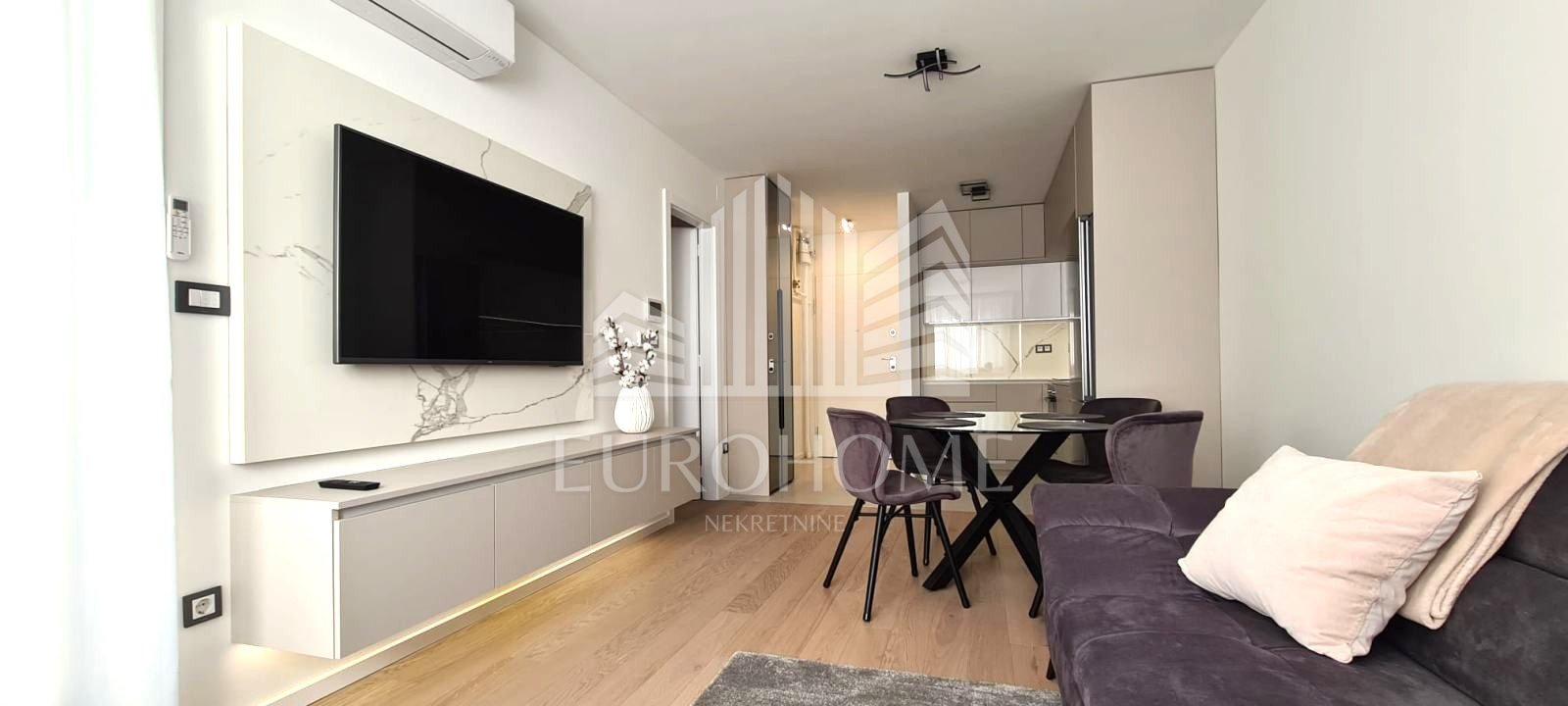 Beschreibung: Eurohome Nekretnine ekskluzivno predstavljaju moderan i luksuzno opremljen 2-sobni stan u novogradnji visoke kvalitete, smješten u srcu Španskog – jednom od najpoželjnijih zagrebačkih kvartova za ugodan život i sigurnu investiciju.