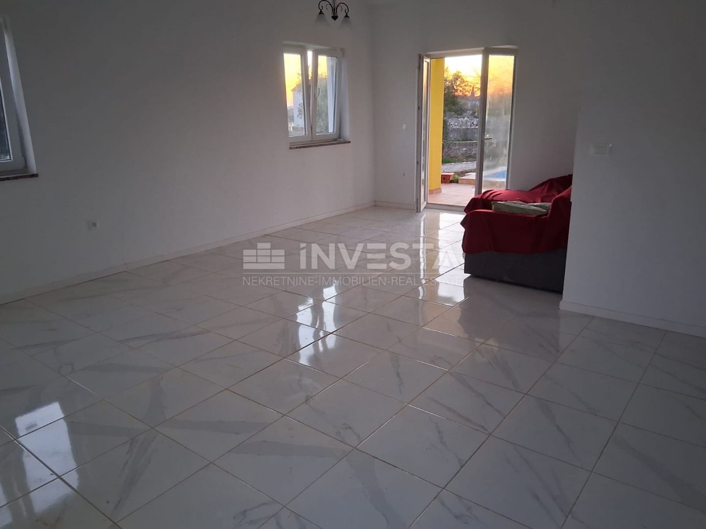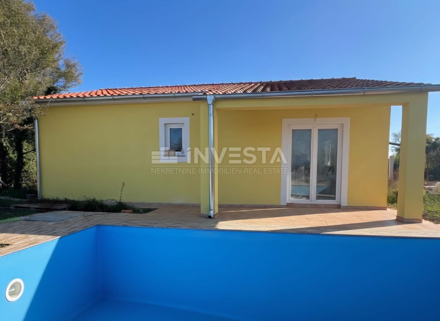 Hochwertiges Einfamilienhaus im Erdgeschoss mit einer Bruttogeschossfläche von 79 m² in ruhiger und schöner Umgebung. Das Haus besteht aus einem offenen Wohnbereich, Küche, Essbereich, zwei Schlafzimmern, einem Badezimmer, überdachter Terrasse und mehreren Parkplätzen im Hof.