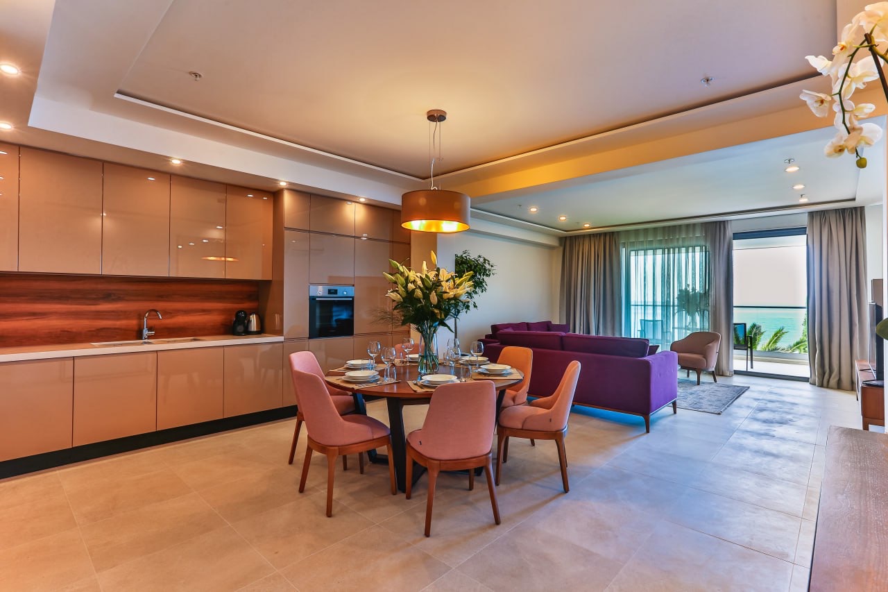 Jede Wohnung ist mit eingebauten Geräten, Möbeln, Textilien und Geschirr ausgestattet — bereit sich zu bewegen!